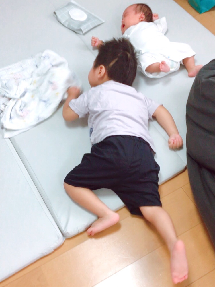 最近次男の動きが激しいので、ふたりを離していても気づくと↑こうなっていたりします。笑